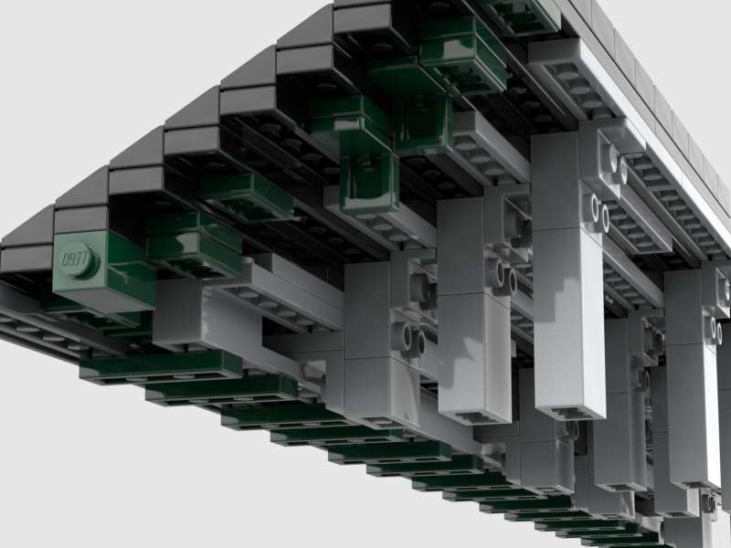 Det eneste er selve forlygterne. De gule klodser piller jeg af. Enten indsætter jeg bare Technic lys, eller finder en løsning med en del der kun sidder inde i selve hullet, og ikke udenpå.